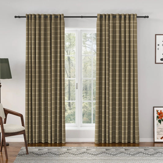 Sienna Windowpane Linen Thermal Curtains Pinch Pleat Drapes