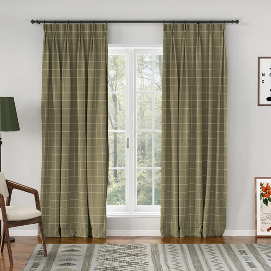 Sienna Windowpane Linen Blend Curtains Pinch Pleat Blackout Drapes