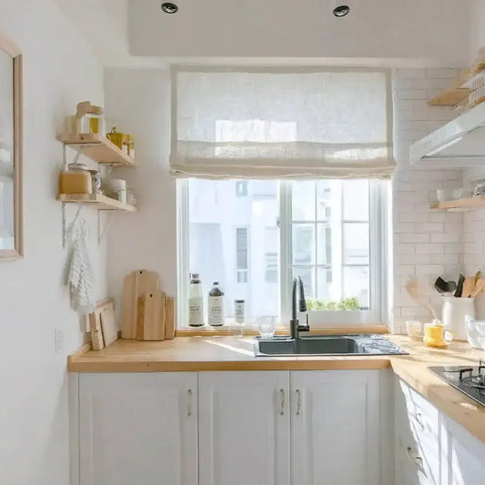 Roman shades are a stylish and practical choice for kitchens, and practicality is key. Opt for Roman shades crafted from moisture-resistant fabrics.