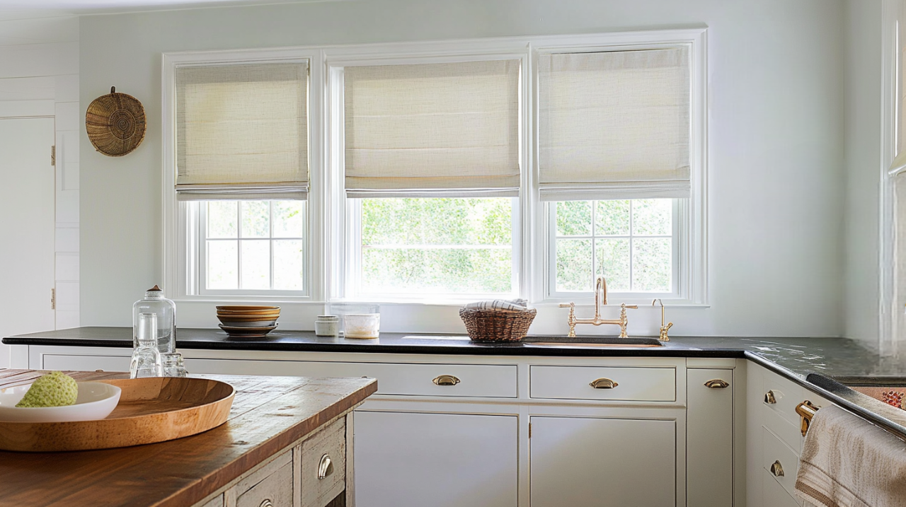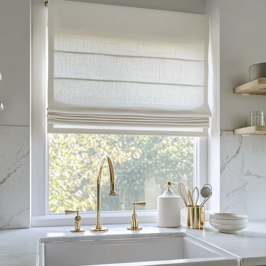 Roman shades are a stylish and practical choice for kitchens, and practicality is key. Opt for Roman shades crafted from moisture-resistant fabrics.