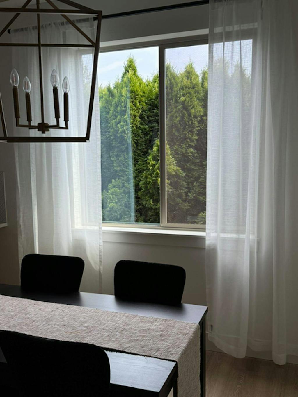 Got these semi-sheer curtains for my dining room — they let in just the right amount of natural light and make the space feel so cozy and elegant. Totally love the soft glow they create!