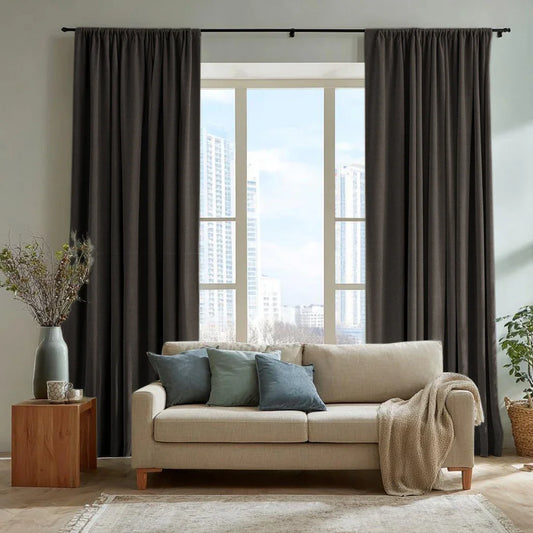 Sienna Windowpane Linen Blend Curtains Pinch Pleat Blackout Drapes